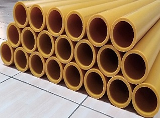 - HDPE Pipes from high density Polyethylene for Gas network system in black, yellow or orange color, also black with yellow or orange lines.